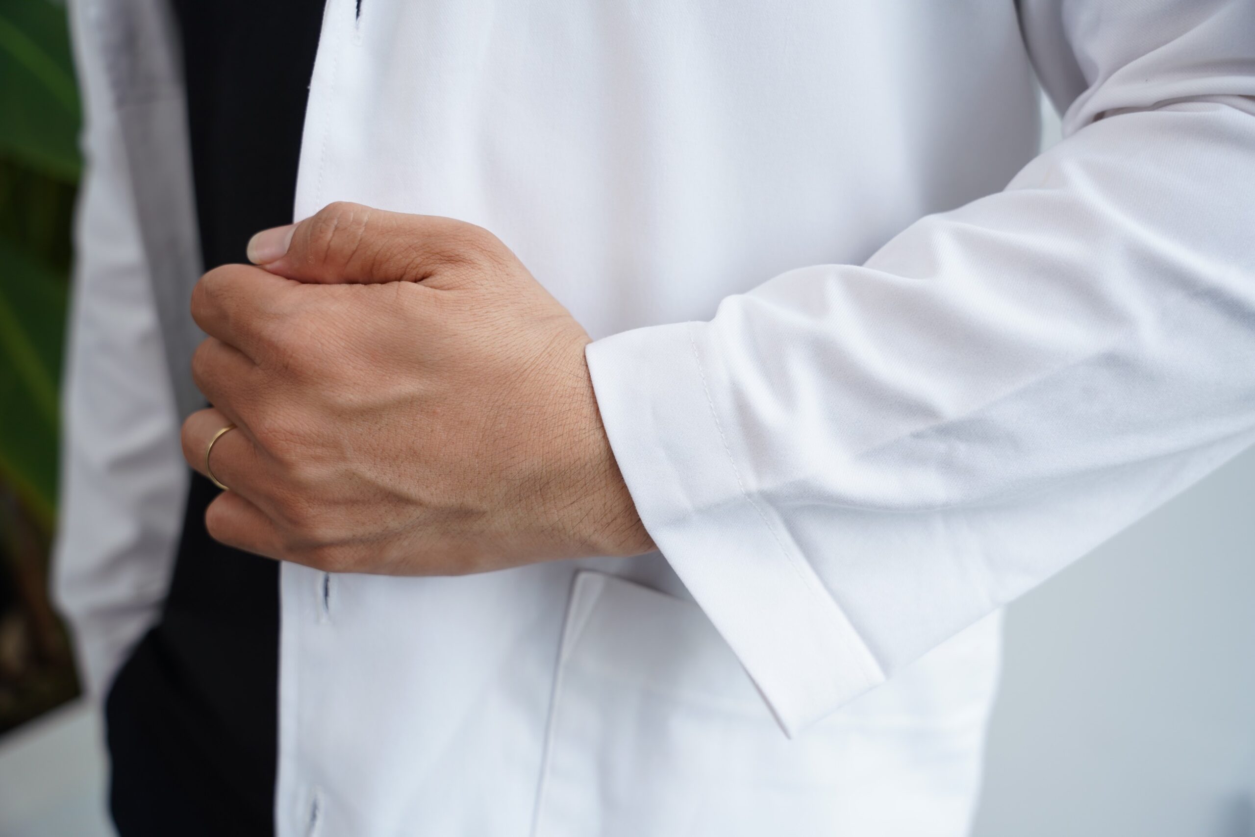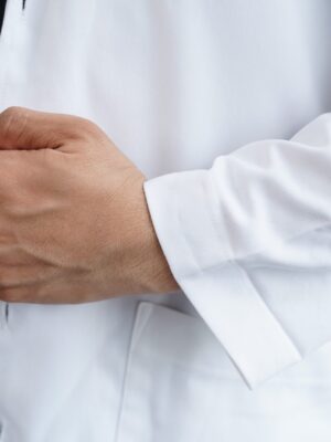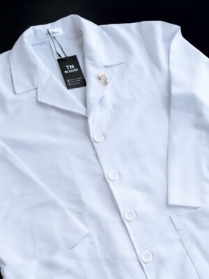 – Cotton lụa co dãn (cotton 50%, polyester 45% và 5% sợi spandex tăng tính co giãn): màu trắng kem, dày dặn, đứng form.